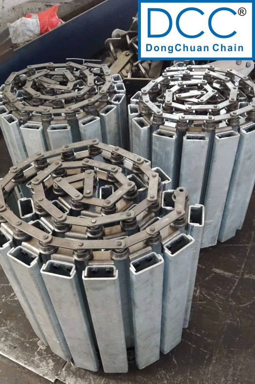 鏈條頂板采用了機器人全自動焊接,保證了每道焊縫的尺寸、強度、滲透性的一致。鏈條頂板表面采用了熱鍍鋅處理,頂板熱鍍鋅后表面顏色鮮艷、美觀。也具有較好的防銹功能,表面熱鍍鋅采用國內先進熱鍍鋅流水線,熱鍍鋅的硬度和粘合度較高,長期摩擦使用不會發生鍍鋅層脫落的現象。