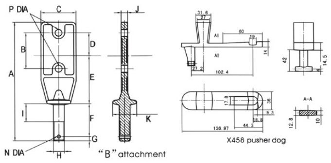 模鍛滑架、吊具、推桿外鏈板和模鍛可拆鏈組合使用,根據不同的使用要求和功能選擇不同的附件配合使用。